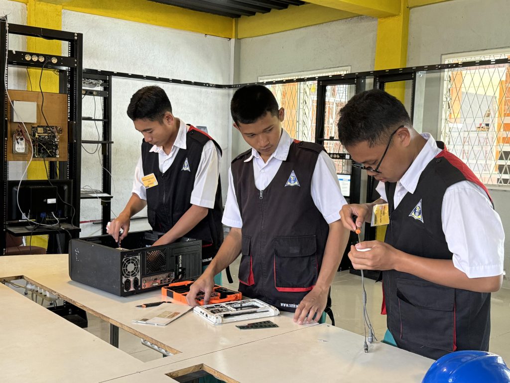 Siswa dilatih untuk menguasai konfigurasi perangkat jaringan, administrasi server, serta teknologi terkini seperti Fiber Optic, Cloud Computing, dan Internet of Things (IoT). Mereka juga dibekali kemampuan teknis untuk mengimplementasikan keamanan jaringan (Network Security), melakukan troubleshooting secara sistematis, serta memastikan ketersediaan layanan komunikasi yang memenuhi standar operasional industri (SOP).