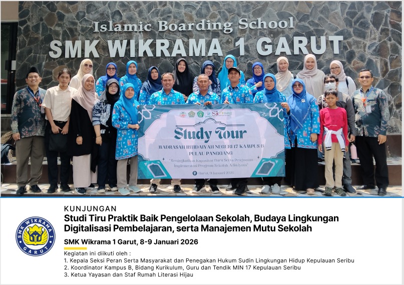 Garut, 9–10 Januari 2026 — SMK Wikrama 1 Garut kembali menunjukkan komitmennya sebagai Sekolah Pusat Keunggulan dengan menerima kunjungan studi tiru dari MIN 17 Kepulauan Seribu Jakarta. Kegiatan ini berlangsung selama dua hari, yaitu pada Jumat dan Sabtu, 9–10 Januari 2026, di lingkungan SMK Wikrama 1 Garut.